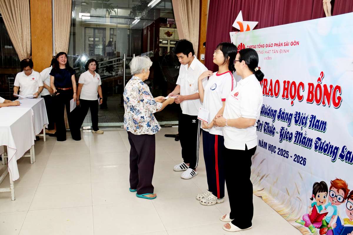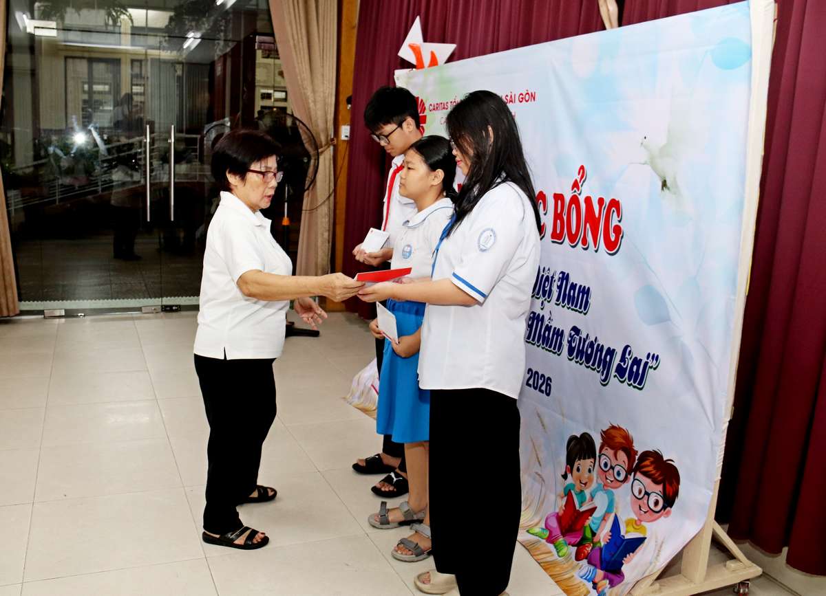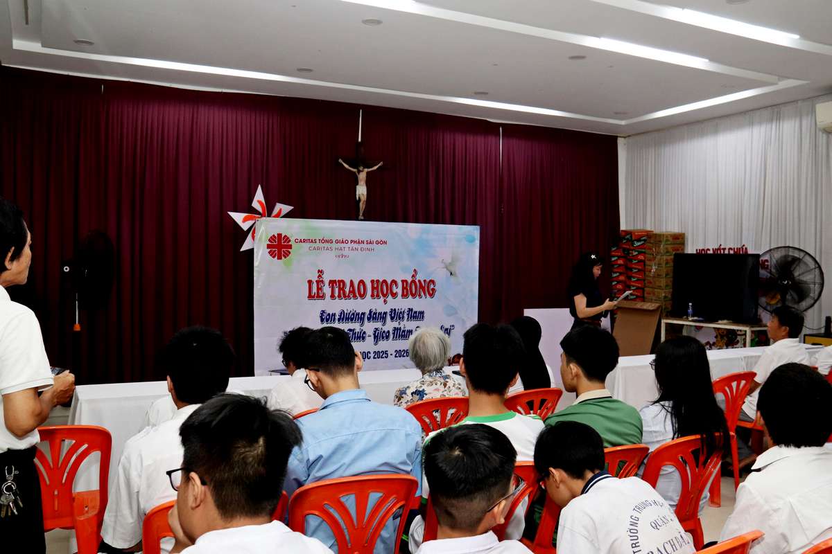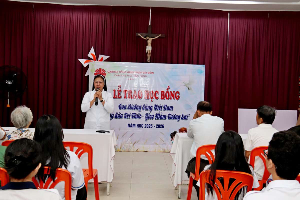 Ban Caritas TGP Sài Gòn muốn nhấn mạnh sự quan tâm, chăm lo cho thế hệ tương lai từ gia đình, giáo hội và xã hội thông qua việc trao học bổng. Các em có hoàn cảnh đặc biệt khó khăn được lựa chọn từ các giáo xứ, đã được văn phòng Caritas TGP Sài Gòn và giáo hạt xác thực, nhằm tạo động lực học tập cho các em. Chính trong bối cảnh này, nữ tu Scholastica Nguyễn Thị Thanh Trâm đã gửi lời nhắn nhủ trực tiếp tới các em ngay trong buổi lễ.