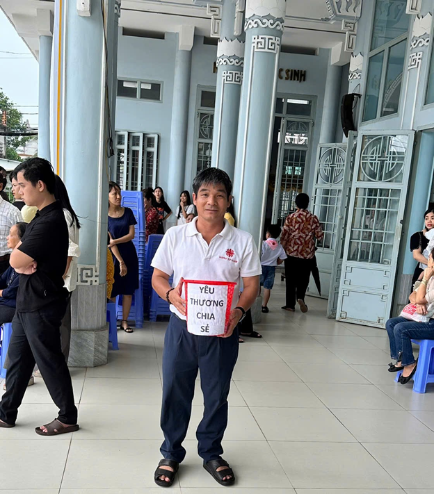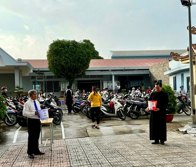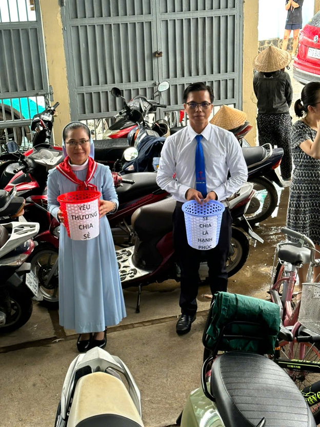 Thật cảm động biết bao khi tất cả cộng đoàn, từ vị Chủ chăn của giáo xứ đến Hội đồng Mục vụ, ban Caritas, quý nữ tu hội Dòng đã trực tiếp đứng xin cứu trợ sau mỗi Thánh lễ.