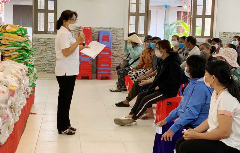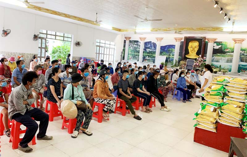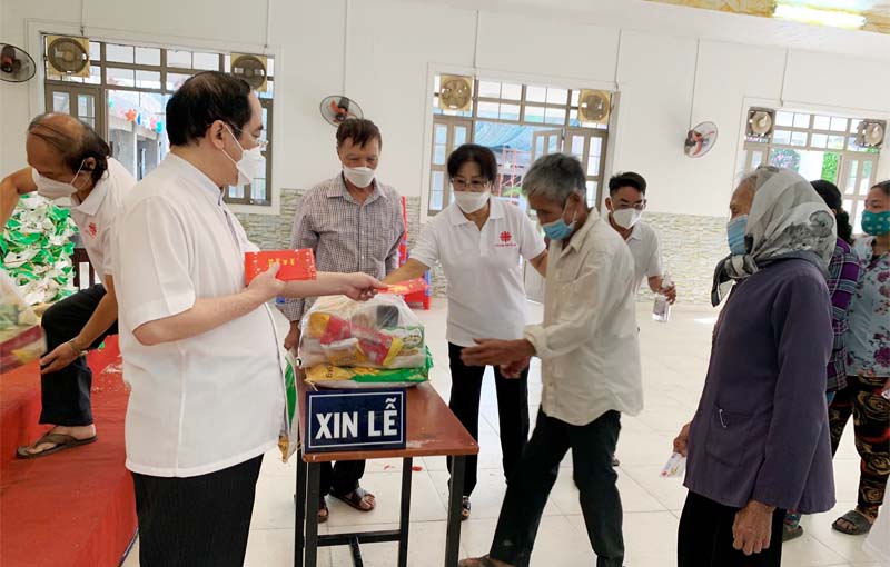 Lm. Chánh xứ Giuse đã trao quà cho khoảng 120 anh chị em hiện diện. Mỗi phần quà gồm 12 món gồm nhu yếu phẩm, bánh kẹo và một phong bì lì xì 500.000đ.