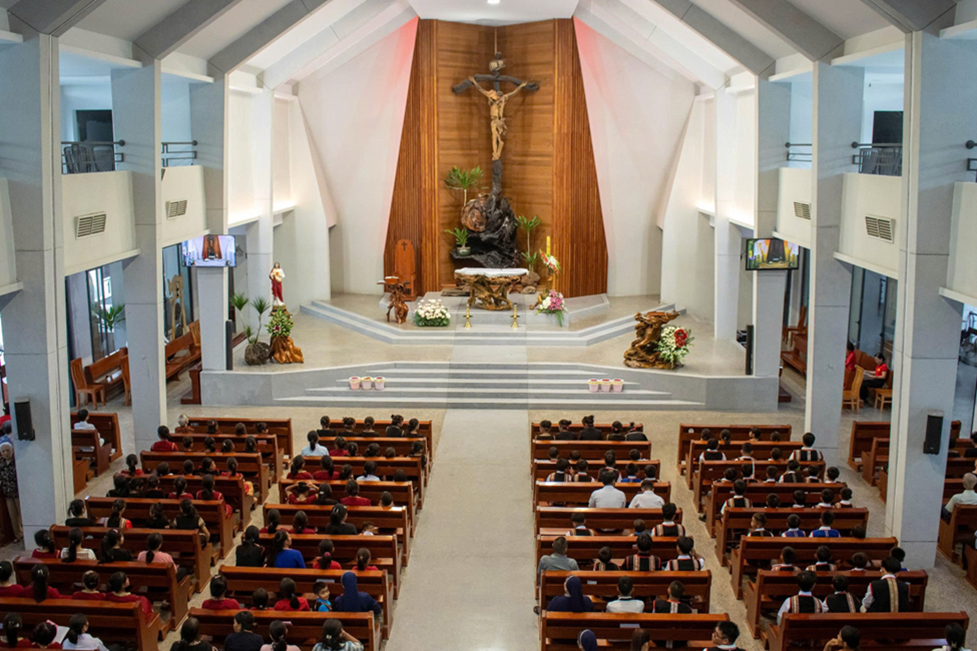 Lúc 14h00 Chúa nhật, ngày 8/6/2025, đoàn đã đến Giáo xứ Tân Đức để hiệp dâng Thánh lễ mừng Chúa Thánh Thần Hiện Xuống. Nhờ sự đón tiếp nhiệt tình của Linh mục Phanxicô Xaviê Nguyễn Tuấn Anh - Chánh xứ Tân Đức - cùng Ban Caritas giáo xứ, các em được nghỉ ngơi, dùng bữa nhẹ và sữa uống trước giờ lễ.