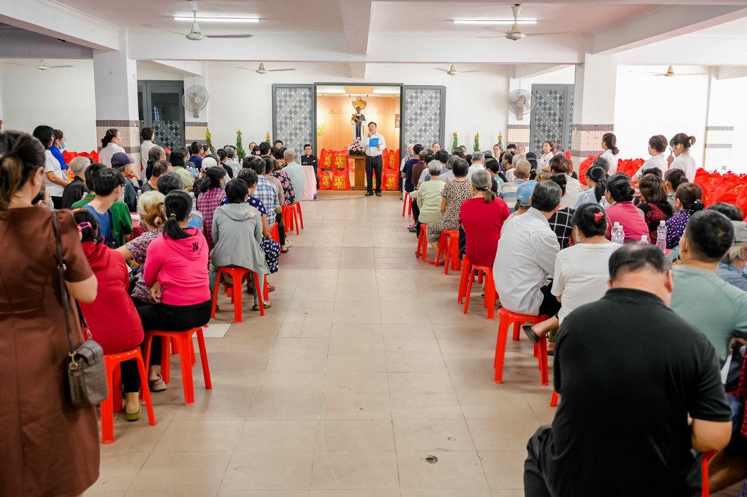 Tham dự chương trình còn có Ban Thường Vụ Hội đồng Mục vụ giáo xứ (HĐMV), đại diện ban điều hành 8 giáo họ, Ban Caritas giáo xứ và đại diện 200 gia đình có hoàn cảnh khó khăn do các khu đạo đề cử.