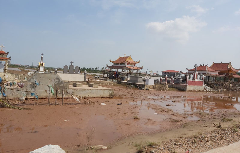 Đò cập bến, đoạn đường đến nhà thờ giáo xứ Cồn Nâm phải đi bộ. Tại nơi đây nước đã rút còn trơ lại dấu tích của trận lũ lịch sử, những cây cỏ còn bám đầy đất bùn và rác, những bịch rác nilông còn vương vấn trên những cành cây cao. Tại giáo xứ Cồn Nâm vẫn còn nhiều chỗ sình lầy chưa dọn dẹp kịp.