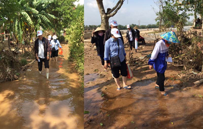 Nước đã rút, nhưng trên đường đi còn nhiều sình lầy và những vũng nước. Có nhiều căn nhà nước ngấm gần đến nóc còn hằn dấu vết ẩm ướt trên tường.