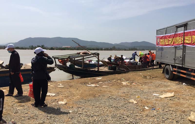 Cha Giám Đốc Gioan Baotixita cho xe đón đoàn tại sân bay, sau hơn một tiếng trên xe, khoảng 10g00, mọi người được hướng dẫn đến bến đò để qua sông thăm giáo xứ Cồn Nâm, giáo phận Hà Tĩnh. Chuyến đò tròng trành trên sông nước khiến người Sài Thành cũng vương chút lo âu và nói với nhau về điều khủng khiếp mà bà con tại đây phải gánh chịu trong cơn lũ.