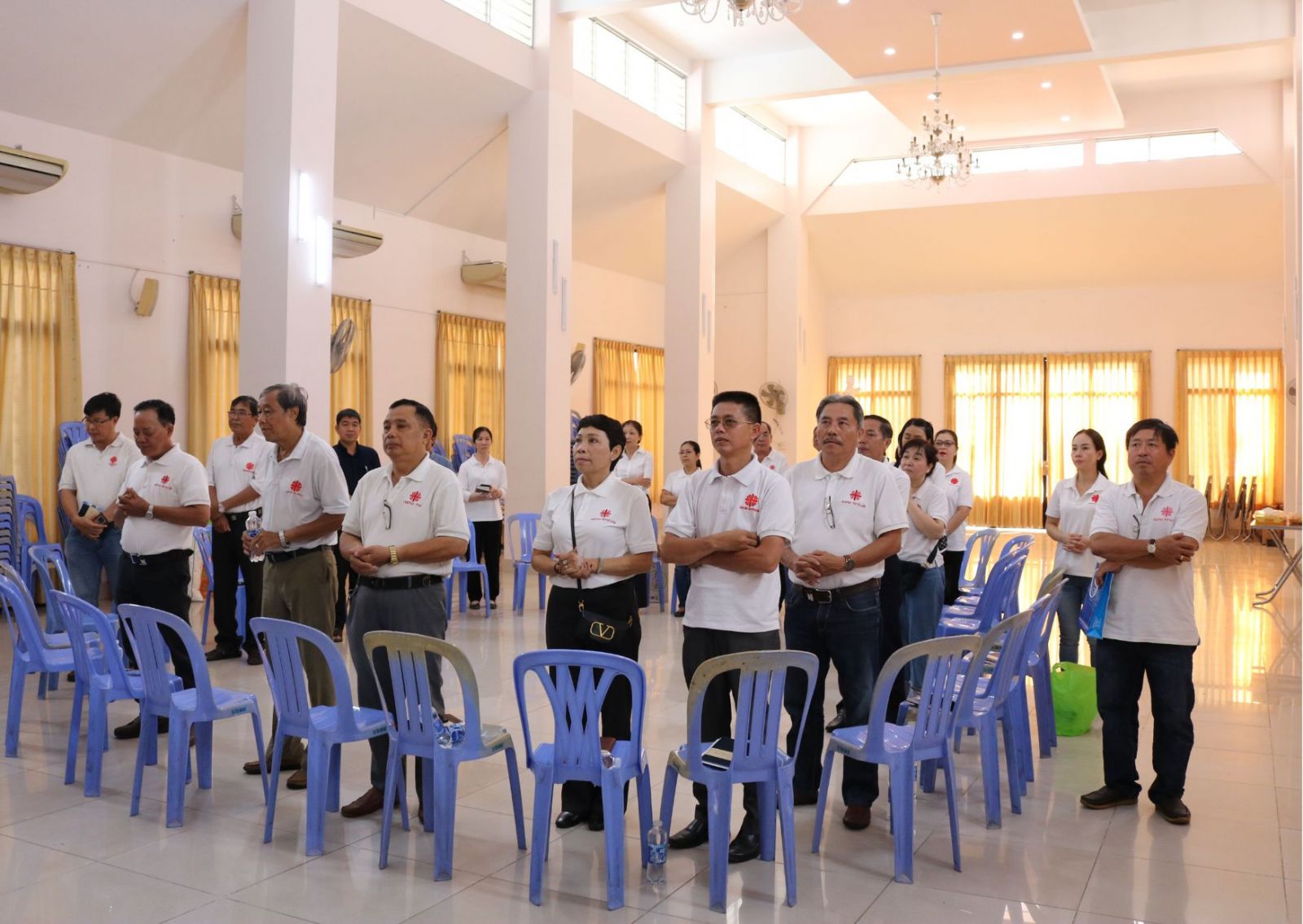 Lúc 7h30 sáng, mọi người đã có mặt để chuẩn bị cho buổi họp này. Cuộc họp bắt đầu lúc 8h30 với nghi thức đọc kinh đầu giờ xin Chúa Thánh Thần soi sáng và chỉ dẫn. Buổi họp được điều hành bởi trưởng Ban Thường Vụ. Thành phần tham dự bao gồm 2 Cha Phó Giám Đốc Phêrô Nguyễn Đình Đạm và Cha Phêrô Phạm Kim Quyền, Quý Soeurs Vp. Caritas Tgp Sài Gòn, Ban Thường Vụ cùng quý chức BLK từ 14 giáo hạt Caritas Tgp.