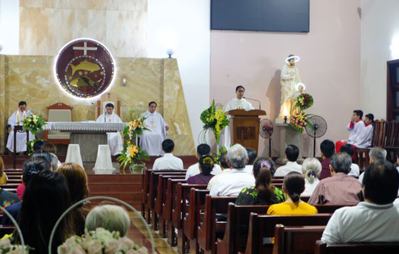 Thánh lễ đồng tế do Cha sở Phú Hòa Vinh Sơn chủ sự; cùng với Lm. Giuse Maria Lê Xuân Dinh; Lm. Phao-lô Phạm Xuân Anh Hào và Lm. G.Baotixita Nguyễn Thanh Tịnh. Tham dự thánh lễ ngoài cộng đoàn giáo xứ còn có các vị ân nhân và khách mời.