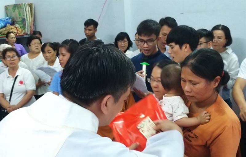 Trời chiều chuyển mưa mát mẻ hòa cùng không khí mừng vui của tất cả các anh chị em tham dự Thánh Lễ. Soeur Hoa phụ trách Mái Ấm và chị Hoàng Nhiễu đại diện Caritas Chí Hòa đã cám ơn tất cả các anh chị bệnh nhân, các thầy, các soeur…góp mặt. Đặc biệt cám ơn Cha Giuse và ông Cố Vấn Giuse Đặng Văn Tưởng, cũng là đại diện công ty Hoàng Đức đã hỗ trợ chi phí cho 2 mái ấm hoạt động trong 2 năm qua, đã đến chung lời cầu nguyện và trao quà cho các bệnh nhân người dân tộc.