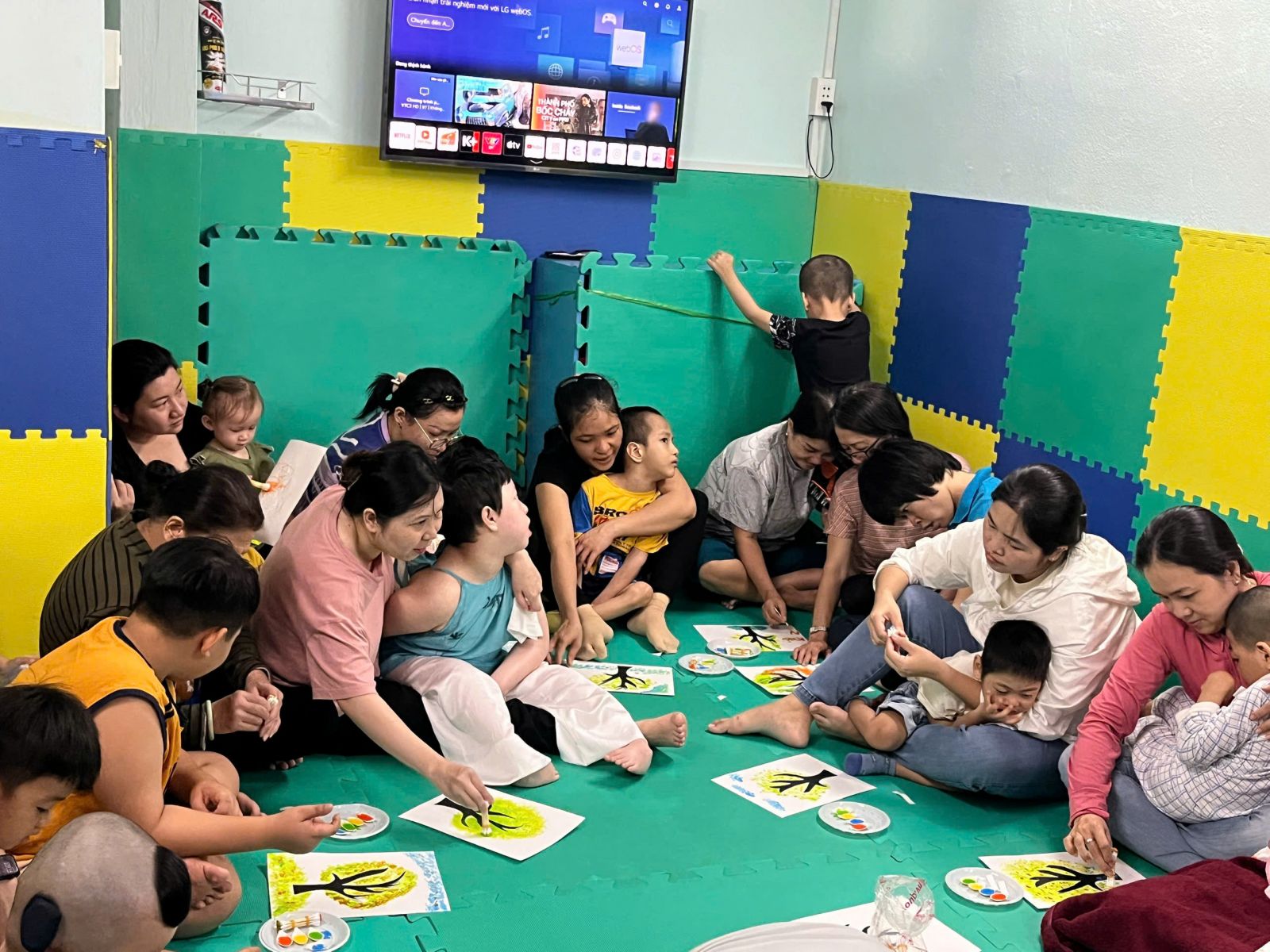 Chương trình vui chơi được bắt đầu với những trò chơi phù hợp với khả năng của các bé như chuyền banh bằng tay, lấy ly chuyền bóng, vẽ tranh bốn mùa, cùng những bài hát sinh hoạt thật vui. Các bé tham gia cách phấn khởi với sự trợ giúp của quý phụ huynh. Bên cạnh đó, tiếng hát của cháu Anh Khôi nói về công ơn cha mẹ đã làm cho căn nhà nhỏ mang một chút tĩnh lặng và ấm áp.