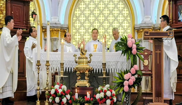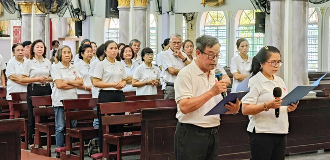 Thánh lễ tạ ơn mừng bổn mạng của gia đình Caritas hạt Xóm Chiếu “do Cha Linh hướng Toma Vũ Duy Tòng chủ tế, cùng đồng tế có Cha Hạt trưởng Giuse Maria Phạm Hồng Thái, Cha sở Giuse Nguyễn Hứu Thức giáo xứ Phú Xuân, cùng quý Cha phó của các giáo xứ trong giáo hạt.
