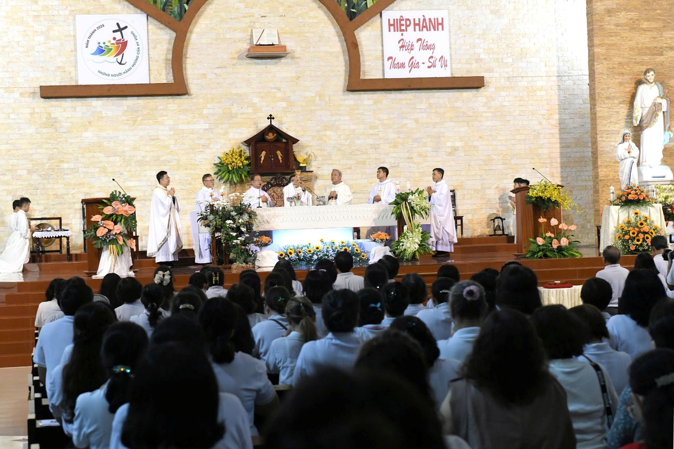 Chủ tế Thánh lễ là Linh mục (Lm) Đa Minh Maria Nguyễn Văn Minh, Chánh xứ Tân Phước - Linh hướng Caritas giáo hạt Phú Thọ. Đồng tế có Lm Giuse Phạm Thanh Bình - Giám đốc Caritas TGP Sài Gòn, Lm Gioan Baotixita Vũ Mạnh Hùng - Hạt trưởng Phú Thọ, Lm Giuse Tạ Huy Hoàng - Chánh xứ Vinh Sơn Phaolô, cha phó Giám đốc Caritas, cha phó Giáo xứ Đồng Tiến.