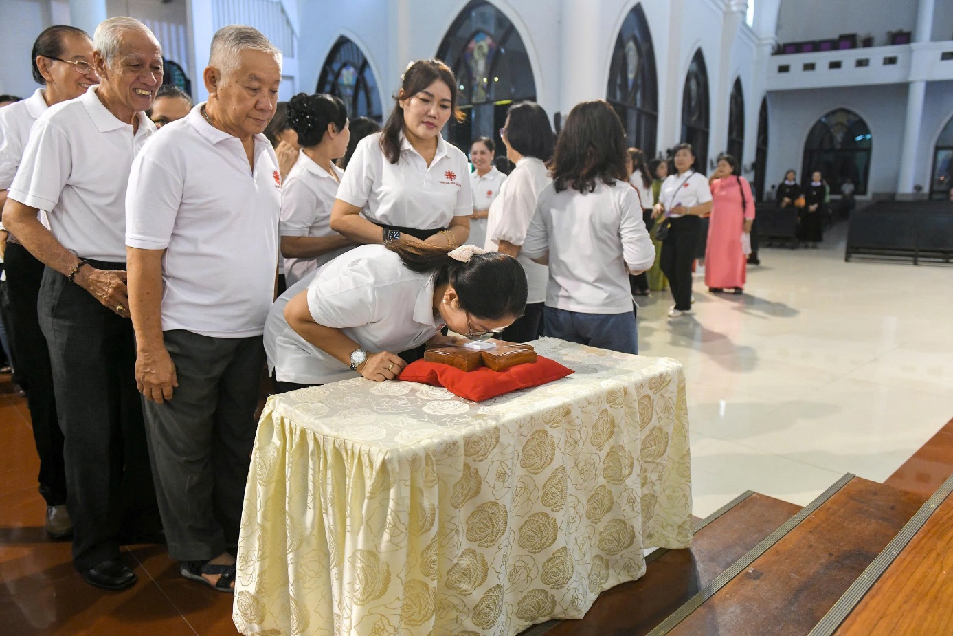 Kết thúc thánh lễ, các thành viên Caritas chụp hình lưu niệm, khép lại một ngày lễ bổn mạng tràn đầy niềm vui, trong tinh thần noi gương phục vụ của Thánh Têrêsa Calcutta. Cộng đoàn được lên hôn thánh tích của Mẹ Thánh Têrêsa.