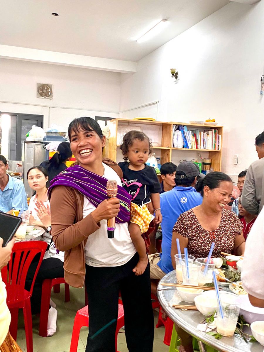 Chương trình mừng lễ Thánh Martino - Bổn mạng Nhà Lưu trú Hà Đông kết thúc trong niềm vui, mẹ bé Siu HMai, dân tộc Giarai ở Kontum đã đại diện các bệnh nhân có đôi lời tri ân đến Cha Phêrô, quý Sơ và quý ân nhân.