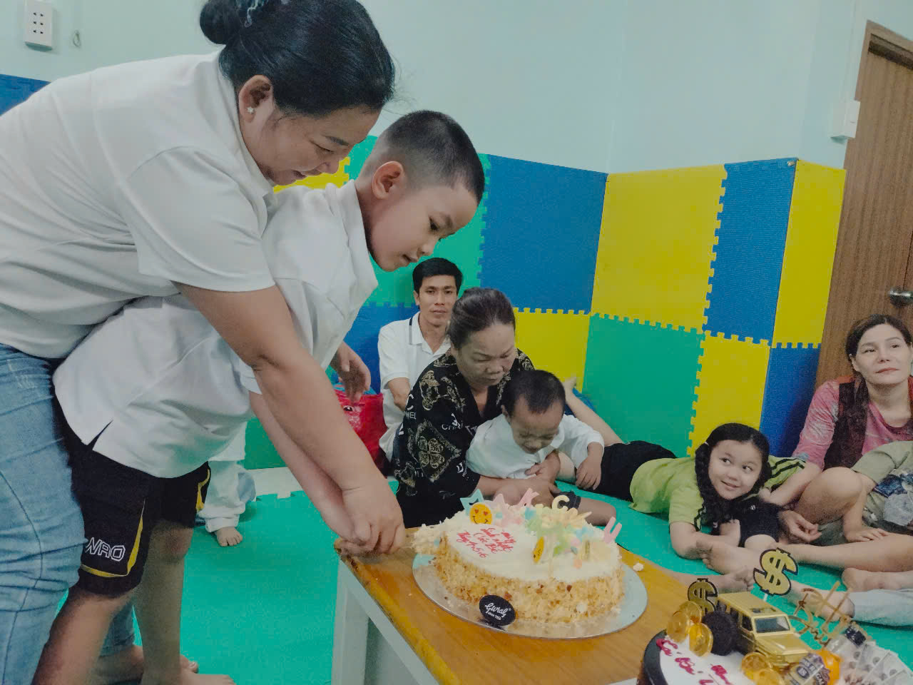 Khoảnh khắc được mong chờ nhất – cắt bánh sinh nhật – diễn ra trong niềm hân hoan rạng rỡ. Chiếc bánh kem được trang trí xinh xắn được mang ra, cùng với bài hát sinh nhật tươi vui và những lời cầu nguyện sâu lắng dành cho các bé có ngày sinh trong dịp này. Những khoảnh khắc ấy chắc chắn sẽ là kỷ niệm ngọt ngào đọng lại trong lòng các em.