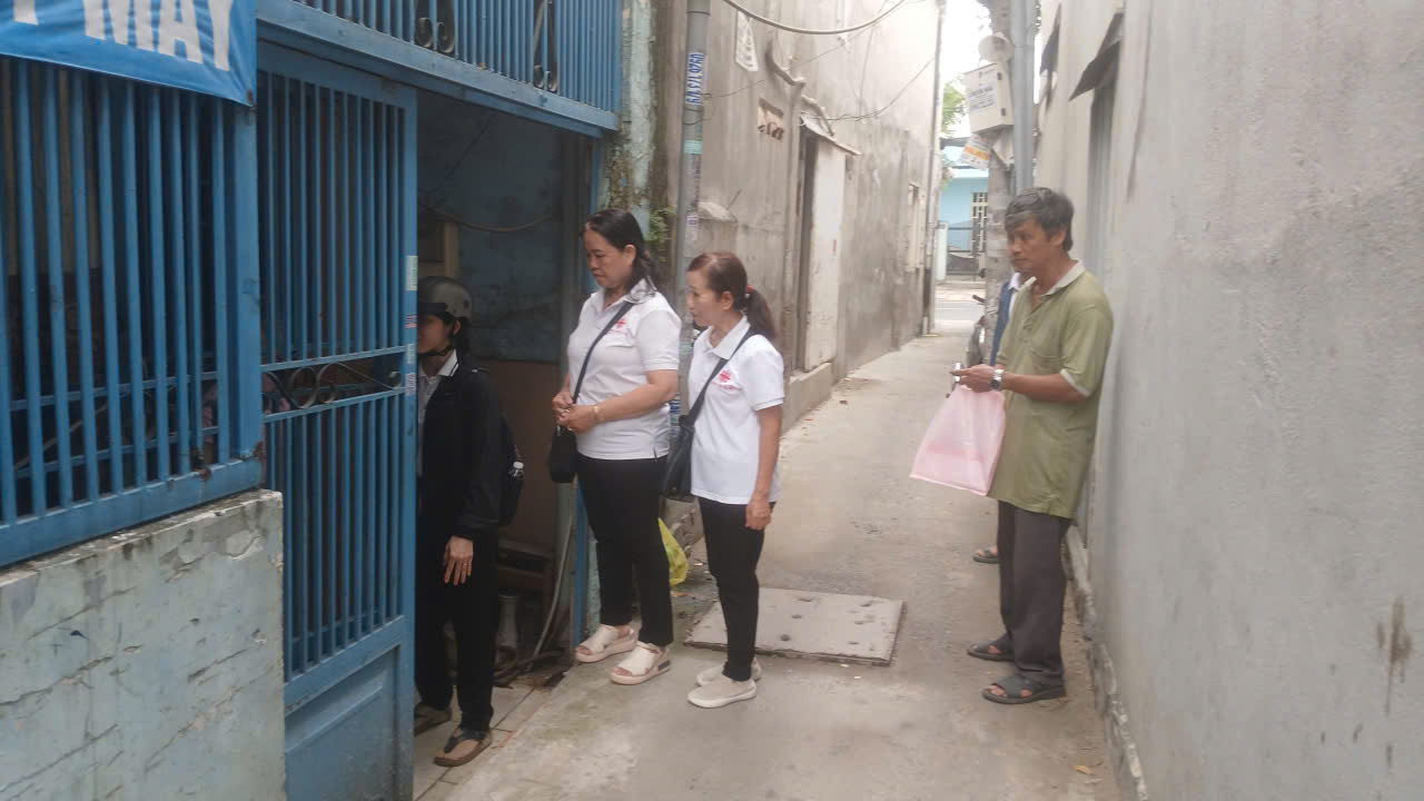 Tiếp theo, chúng tôi đến thăm bà Nguyễn Thị Giàu, ngoài 80 tuổi, chân yếu đi lại khó khăn. Bà sống cùng con trai, con dâu đi làm lo cho gia đình. Nhìn bà, chúng tôi thấy cả một đời người vất vả qua những nếp nhăn sâu hun hút trên gương mặt. Rồi gia đình anh Phạm Văn Bình - những người con xa xứ vào Nam lập nghiệp. Ba đứa con nhỏ, bé gái lớn nghỉ hè phải nghỉ chơi để phụ cha mẹ trông hai em. Nhìn anh chị bán bánh ướt từ sáng sớm, con đường vắng tanh khách hàng hiếm hoi, lòng chúng tôi thấy nặng trịu. Xa quê hương, hai bên nội – ngoại ở xa, không có ai nương tựa, chỉ có đôi tay và ý chí để vươn lên. Trong hẻm nhà anh Bình, chúng tôi cũng ghé thăm gia đình chị Hồ Thị Thủy cùng hai đứa con nhỏ trong ngôi nhà trọ chật hẹp. Chồng đi làm công với đồng lương ít ỏi trang trải qua ngày. Ở đây đa phần đều là những gia đình lao động nghèo, thu nhập thấp, phải bươn chải để kiếm sống từng ngày.
