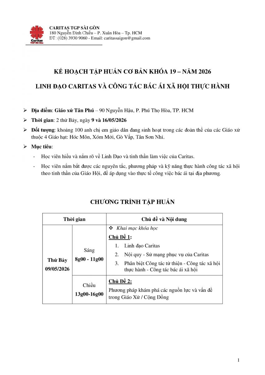 KẾ HOẠCH TẬP HUẤN CƠ BẢN KHÓA 19 – NĂM 2026