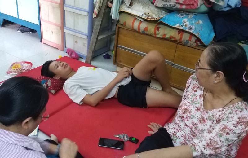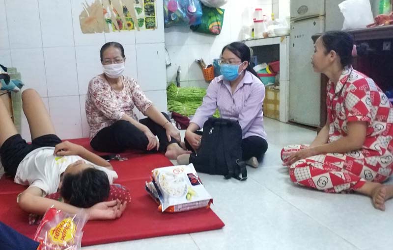 Cô của Thùy, chị Lê Thị Thơm, hôm 25 tết, thấy cháu Thùy ôm con mắt trái còn lại khóc đau, đã đưa cháu về nhà trọ ở Thủ Đức, với hy vọng cháu cũng sẽ được hỗ trợ chữa mắt như chồng chị.