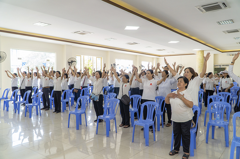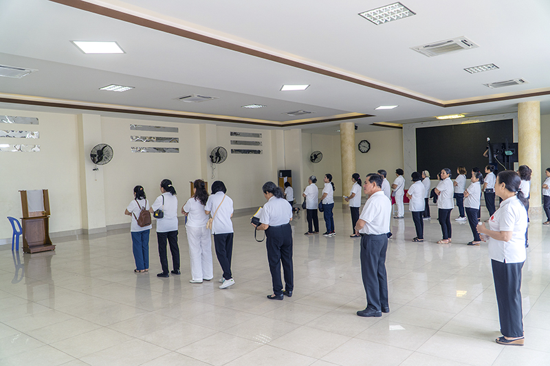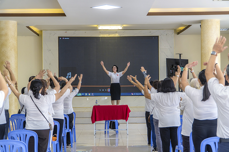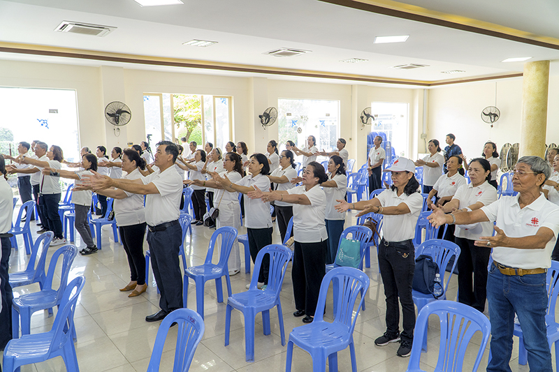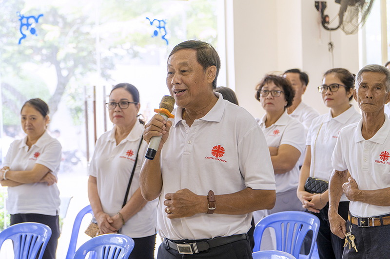 Tại hội trường Giáo xứ, mọi người cùng hát và làm vũ điệu khởi động thật vui tươi. Cha Linh hướng Caritas Giáo hạt Giuse Nguyễn Hoàng Thanh cũng là Chánh xứ Bình Chiểu đã chúc mừng lễ bổn mạng, ngài vui mừng đón chào mọi người hiện diện hôm nay như là một sự hiệp hành trong sứ mệnh loan báo Tin mừng, mà công tác bác ái anh chị em đang nỗ lực thực hiện là điểm sáng trong môi trường sống đạo.
