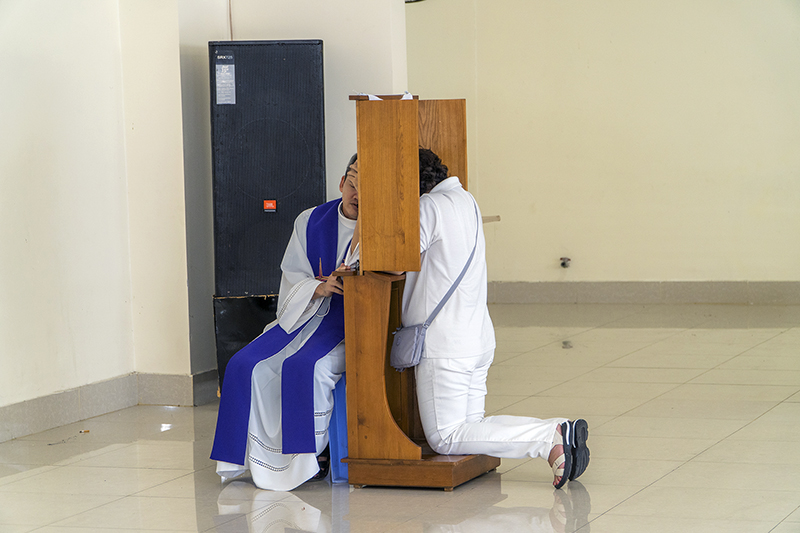 Sau phần chia sẻ của Cha Giám đốc Caritas, anh chị em đã lãnh nhận bí tích giao hòa để chuẩn bị long trọng cho Thánh lễ Bổn mạng.