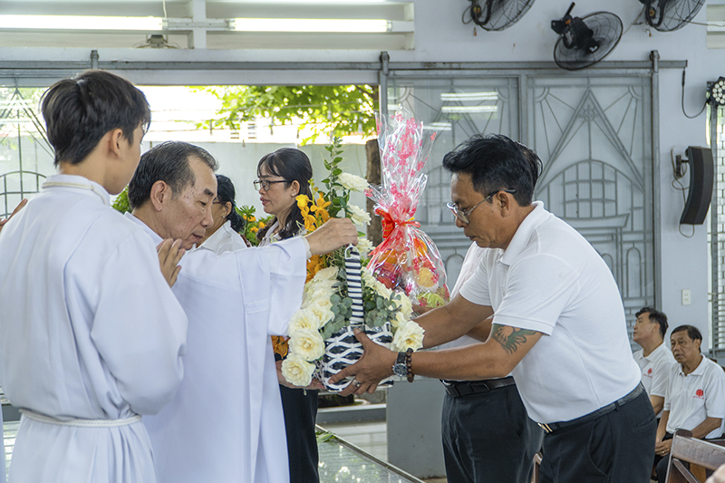 Thánh lễ do cha Hạt Trưởng Gioa-kim Trần Văn Hương chủ tế, đồng tế với ngài còn có quý Cha: Giuse Phạm Thanh Bình - Giám đốc Caritas Sài Gòn, Giuse Nguyễn Hoàng Thanh linh hướng Giáo hạt Thủ Đức, Giuse Nguyễn Minh Đức - chánh xứ giáo xứ Từ Đức, Cha phó giáo xứ Bình Chiểu và quý Cha Dòng Đồng Công.