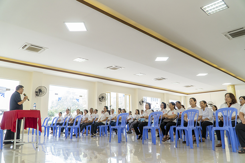 Từ 7g30, hơn 100 anh chị em từ 12 Giáo xứ của Giáo hạt Thủ Đức đã tề tựu đông đủ, tay bắt mặt mừng, cùng nhau hỏi thăm, chia sẻ công tác bác ái của từng giáo xứ trong một năm qua.