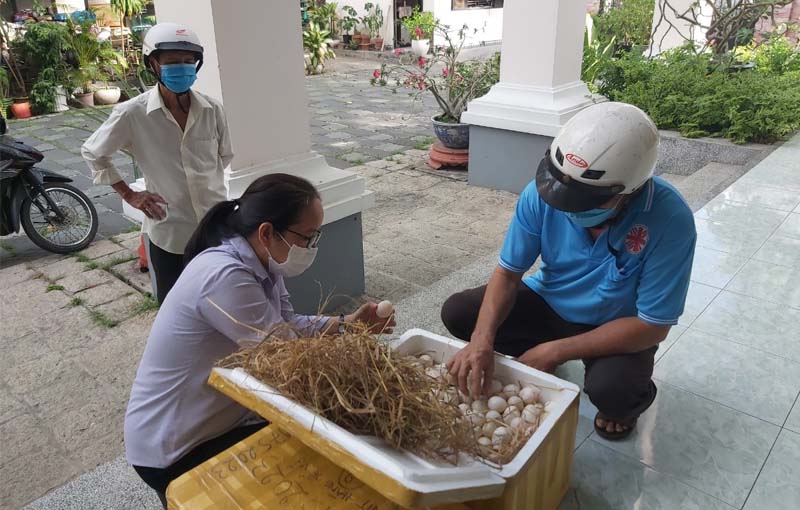Đồng thời có 1.000 trứng vịt do chị Nguyễn Thị Kim Dung tài trợ, được trao cho Giáo hạt Bình An.