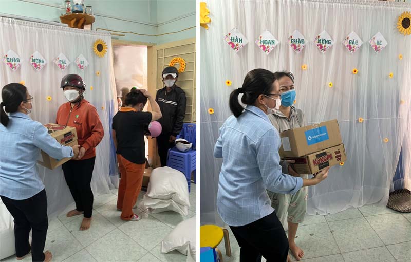 Trong tình hình dịch bệnh Covid-19 vẫn đang diễn tiến phức tạp, buổi trao quà cho các gia đình diễn ra thuận lợi với sự sắp xếp thời gian giãn cách, để các gia đình lần lượt đến mái ấm nhận quà, phòng tránh việc tụ tập quá đông và giữ gìn an toàn cho các cộng tác viên, gia đình bé và cũng như những người xung quanh.
