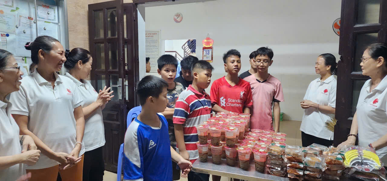 Mặc dù trời mưa khá to nhưng quý cô cùng quý chị vẫn thực hiện đi công tác vì đã lên CT trước đó. Đến vui chơi sinh hoạt cùng chia sẻ những phần quà yêu thương từ quý vị ân nhân của CARITAS TGP gửi trao, gồm bánh trung thu là lồng đèn thật dễ thương kết hợp với TGP CARITAS Hạt Phú Thọ có thêm những ly trà sữa thơm ngon đến 2 mái ấm Hoa Huệ và Sơn Kỳ cho các e vui mùa trung thu năm nay.