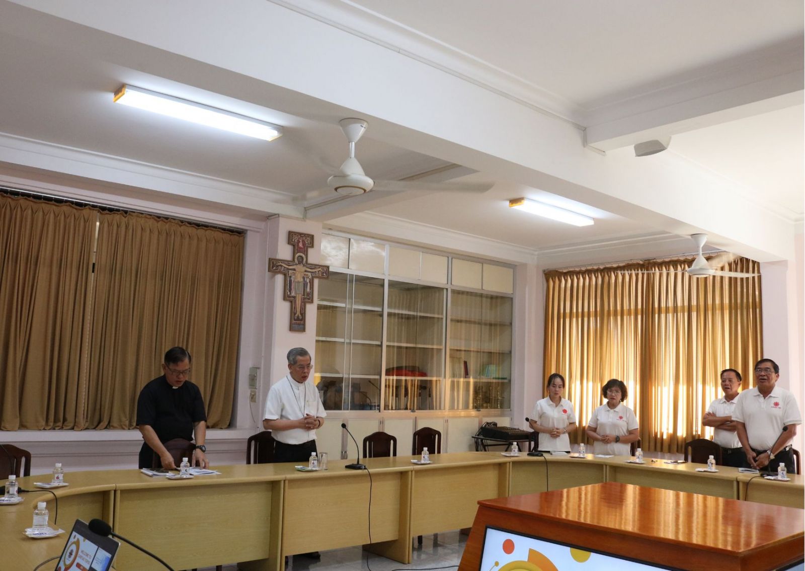 Mở đầu cuộc họp, Cha Giám đốc Caritas dâng lên lời cầu nguyện Kinh Chúa Thánh Thần, xin Ngài soi sáng và dẫn dắt cuộc họp theo thánh ý Chúa. Cha cũng gửi lời chào đón Đức Tổng Giuse, bày tỏ sự trân trọng đối với sự hiện diện của Ngài, và khẳng định rằng sự có mặt của Đức Tổng chính là động lực mạnh mẽ, là sự khích lệ lớn lao cho công tác tông đồ mà Caritas đang thực hiện. "Chúng con xin được làm cánh tay nối dài của những hoạt động bác ái mà Đức Tổng đã chỉ dẫn và định hướng cho chúng con."