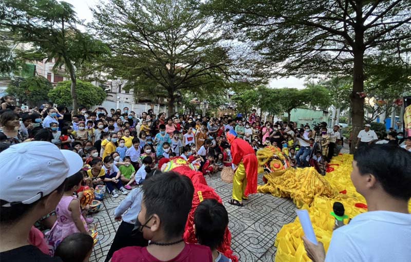 Ngày 9/9/2022, lúc 17g30, tại một công viên nhỏ trong hẻm 270 đường Cao Lỗ, Quận 8, đã diễn ra Chương trình vui Trung Thu, chủ đề Vầng Trăng Giêsu do Caritas TGPSG thực hiện. Sau vài lời tâm tình của của Lm. Giuse, và lời khai mạc của Lm. Vinh Sơn, tiếng trống múa lân vang lên, tiếng trẻ thơ và cả người lớn vỗ tay hưởng ứng. Ánh mắt trẻ thơ sáng lên, xôn xao reo hò theo nhịp trống, bầu khí thật sinh động. Các em ở đây đa số là sống tại nơi gọi là Xóm Rác, có hơn 500 phần quà đã được trao cho các em.